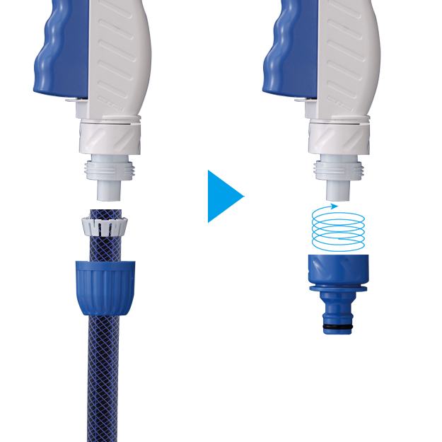 This is a part that converts a hose-attached watering nozzle into a one-touch connection type.