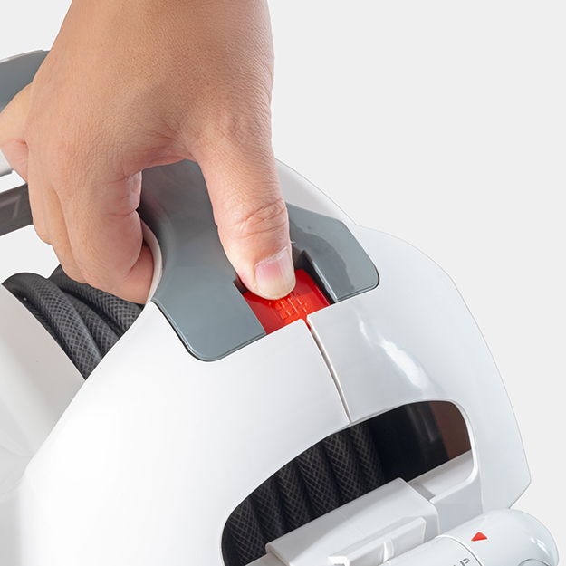 Press the button to wind up the hose and release it to stop winding.