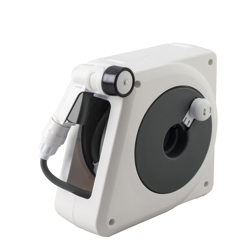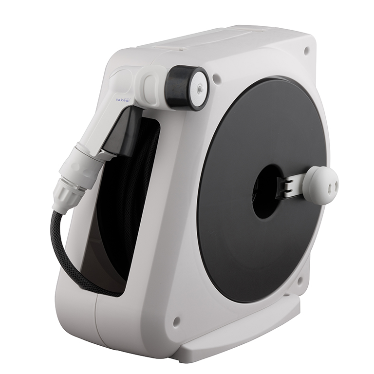 A lightweight compact watering hose reel that can be stored neatly. It has a smooth surface and uses a “smooth hose” that reduces sticking to each other. The watering nozzle is also light and compact in the palm of your hand, but you can switch to four types of water shapes. The connection to the faucet is a one-touch connection that does not require any tools, just put it on the faucet and turn the dial. The faucets mounted are horizontal faucets (faucet diameter 14-18mm), universal home faucets (faucets 14-18mm).