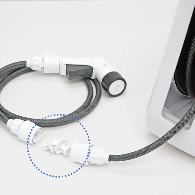 A lightweight compact watering hose reel that can be stored neatly. It has a smooth surface and uses a “smooth hose” that reduces sticking to each other. The watering nozzle is also light and compact in the palm of your hand, but you can switch to four types of water shapes. The connection to the faucet is a one-touch connection that does not require any tools, just put it on the faucet and turn the dial. The faucets mounted are horizontal faucets (faucet diameter 14-18mm), universal home faucets (faucets 14-18mm).